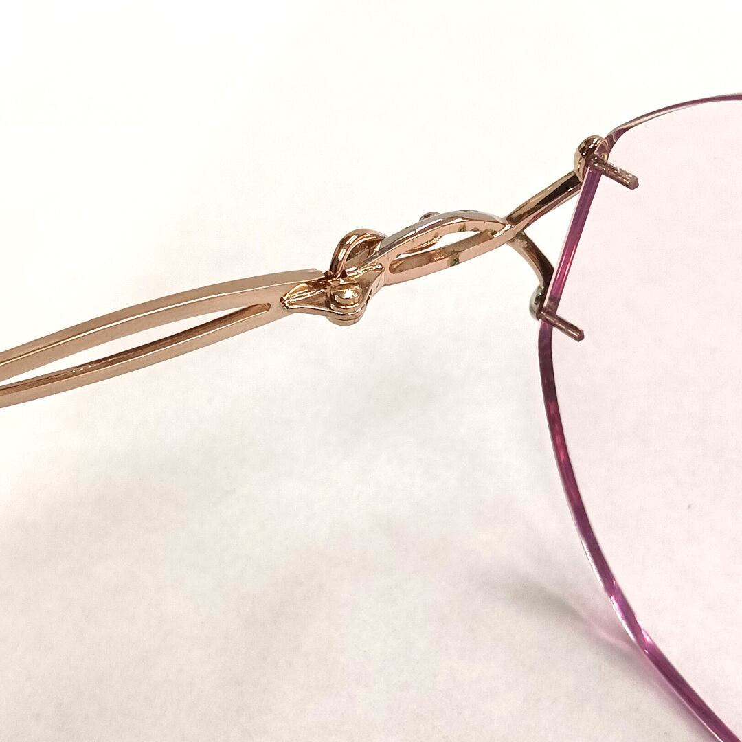 レンズには薄いピンクに近いバイオレットのカラーが入っています。右レンズに貼ってあります「サイズ表記のシール」を剥がせば、そのまま使用する事も可能です。