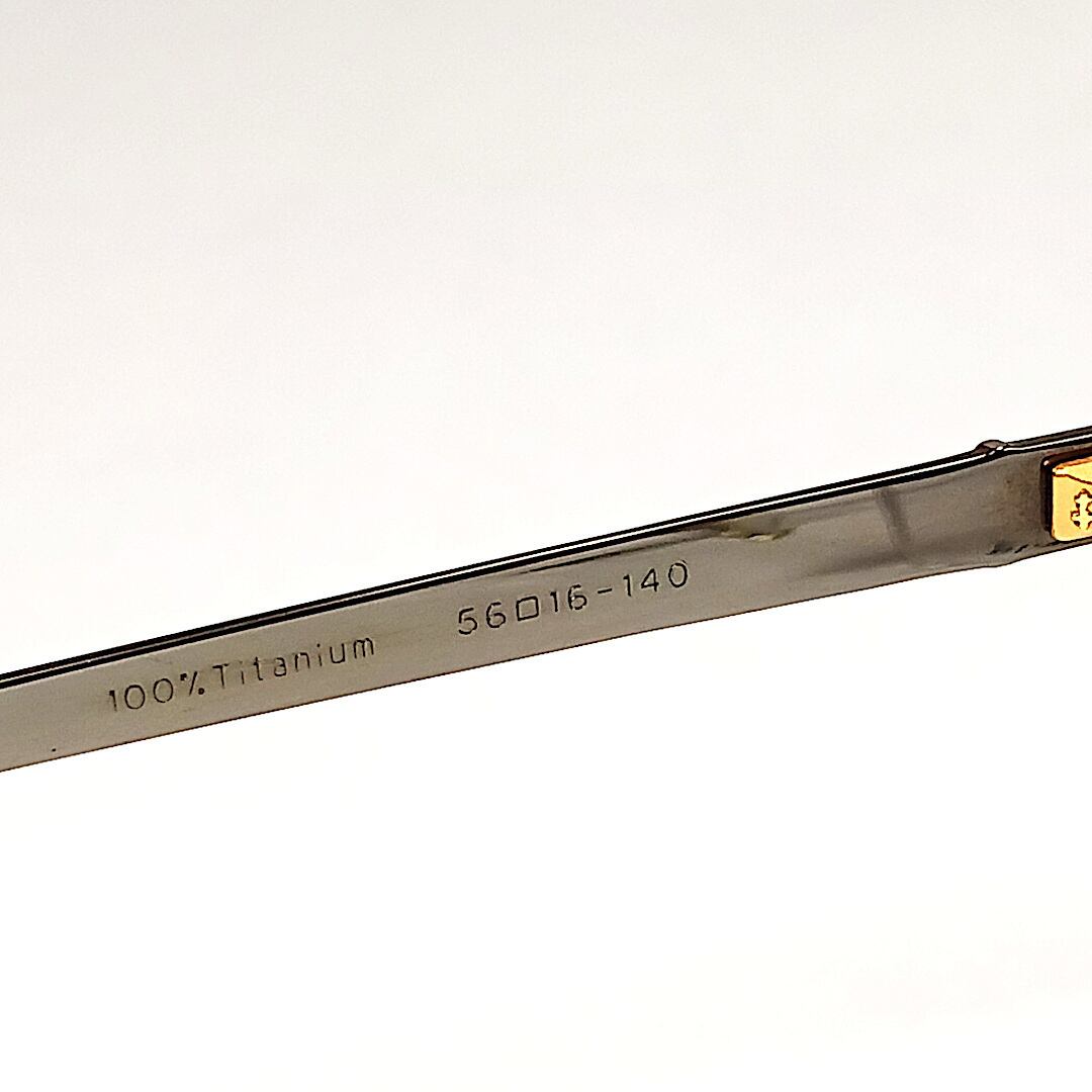 こちらのフレームの右側のテンプル(つる)に「IP」の表記がありますが、これは「ION PLATING」 の略で従来より高強度のメッキ技術を使った表面処理を意味しています。イオンプレーティングによるメッキは強く寿命が長いという特徴があります。