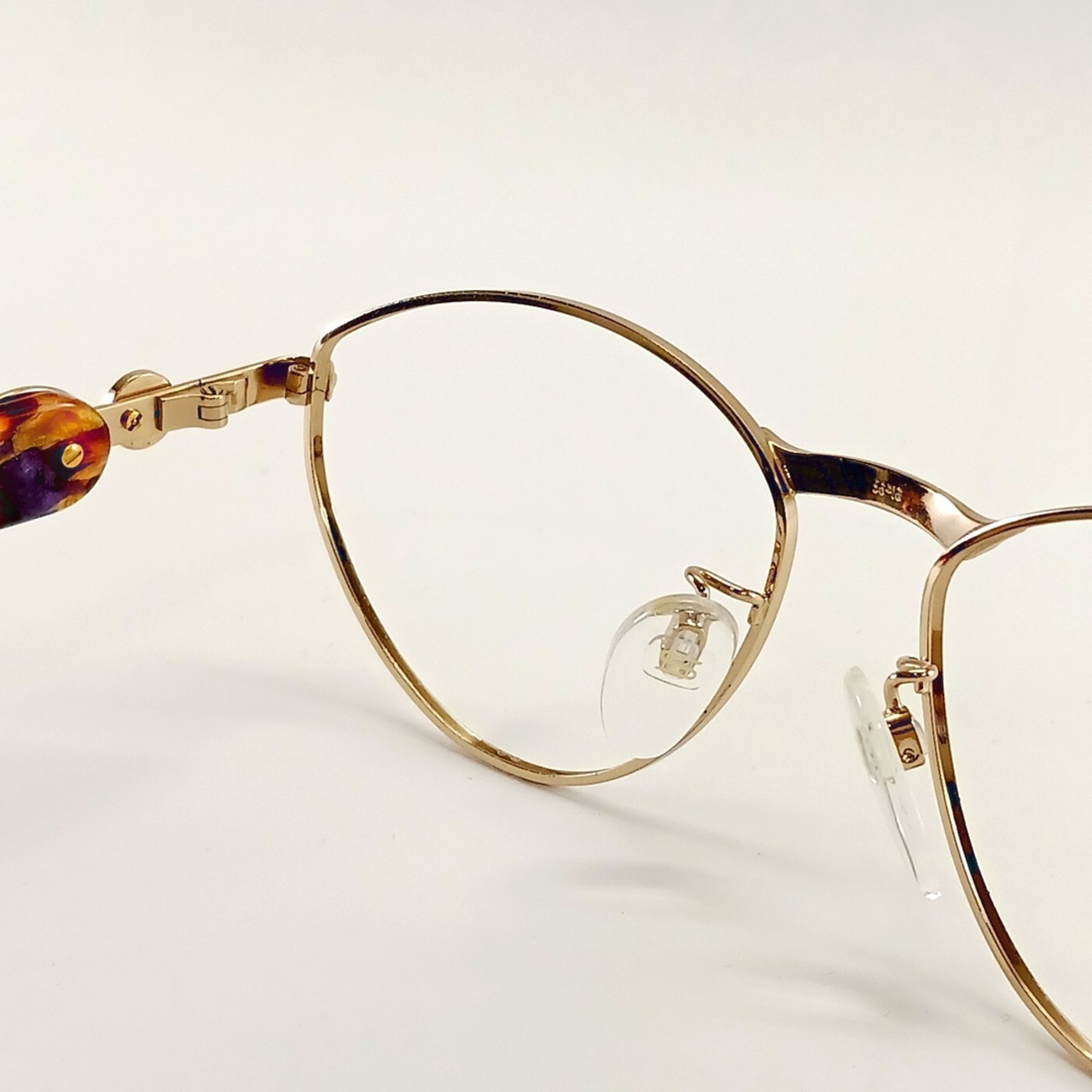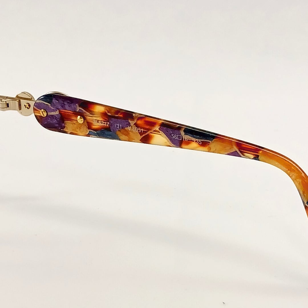 最も大きな特徴は、なんといってもテンプル(つる)の美しい色彩です。色とりどりの透明感あるアセテート生地がとても鮮やかです。樹脂部分に劣化は有りませんので、新品当時の綺麗さを保っています。