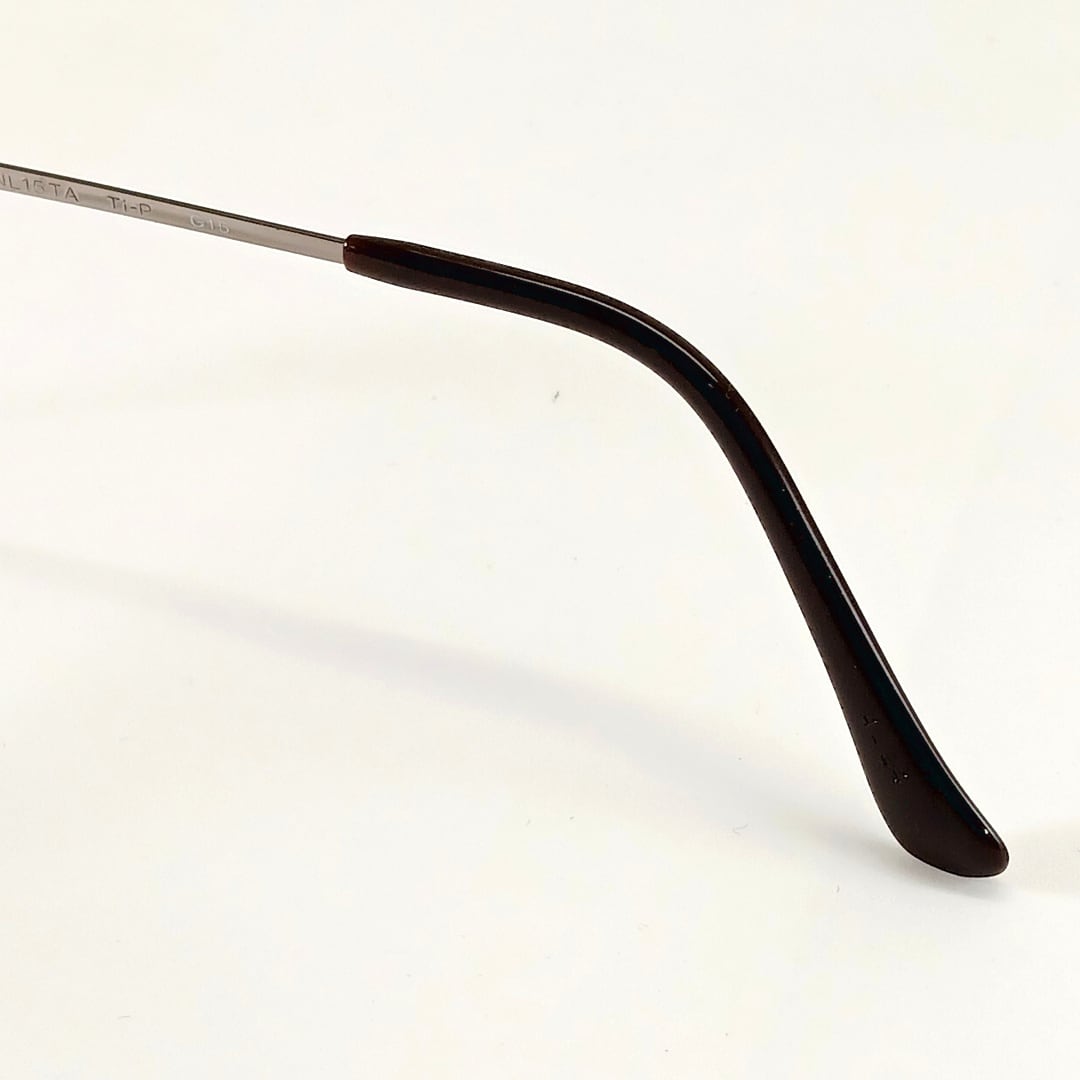 特別な飾りはありませんが、HOYAらしく表面の凹凸をうまく使って上品な感じに仕上げています。形状はオーソドックスな紳士用です。当時のメーカー製品はほぼ100%日本国内で製造していましたので、高品質な商品が大半でした。そんな時代のフレームです。