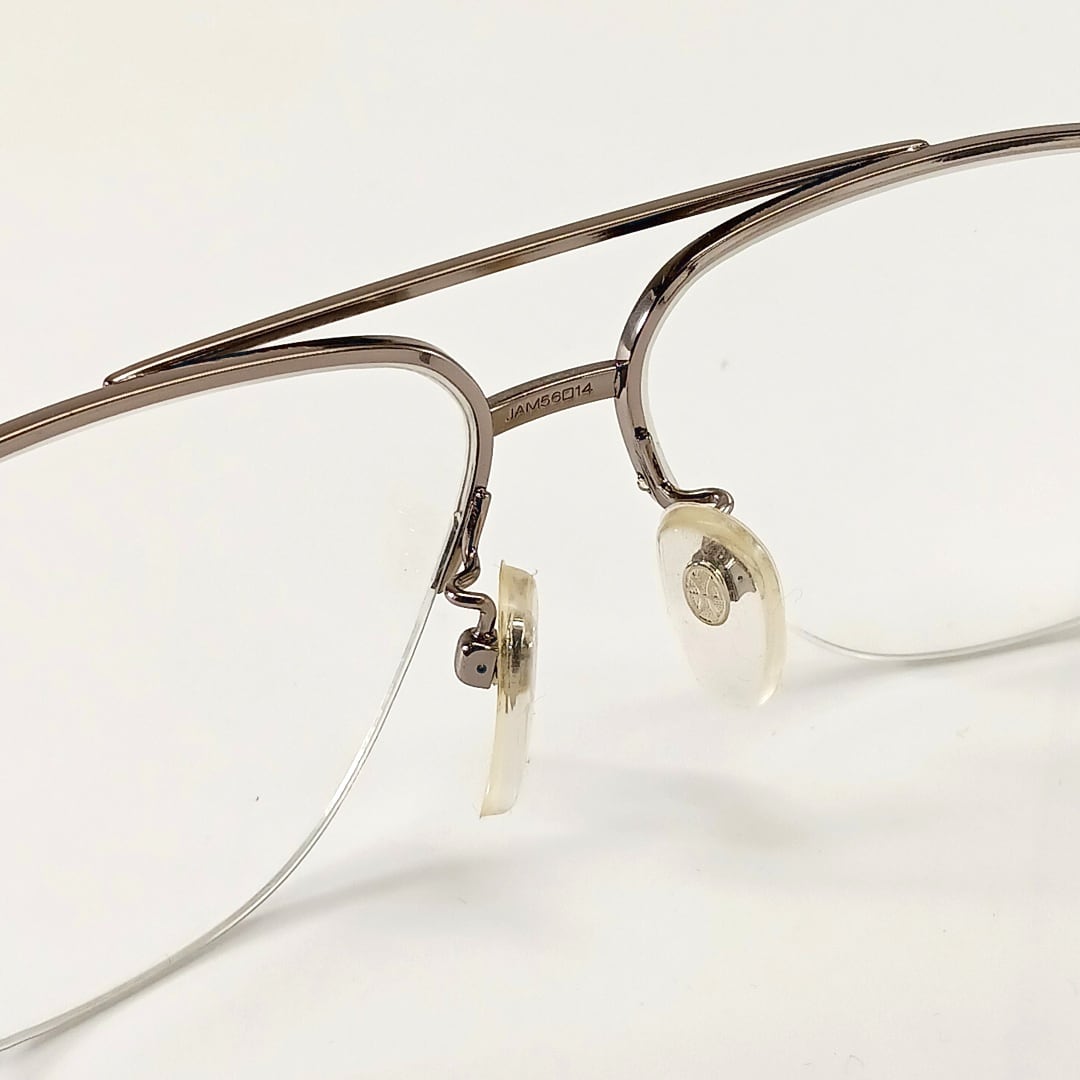 製造から20年以上経過していると思われます。が、ダミーレンズに多少の小傷がある他には、本体の劣化は軽微です。左右のテンプルの重なる(内側)に僅かなスレ傷がある程度です。丁番の開閉もしっかりしています。