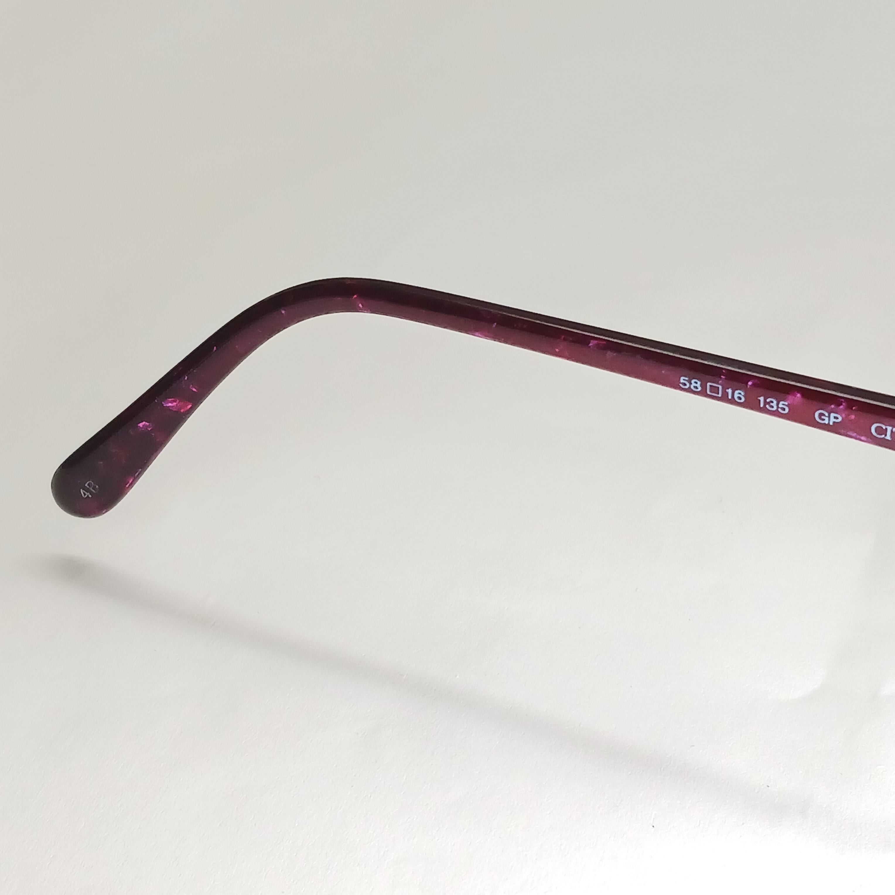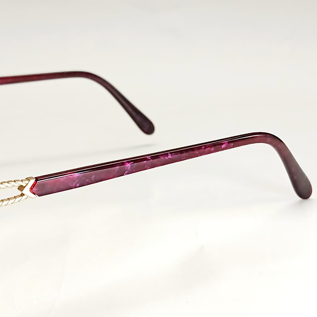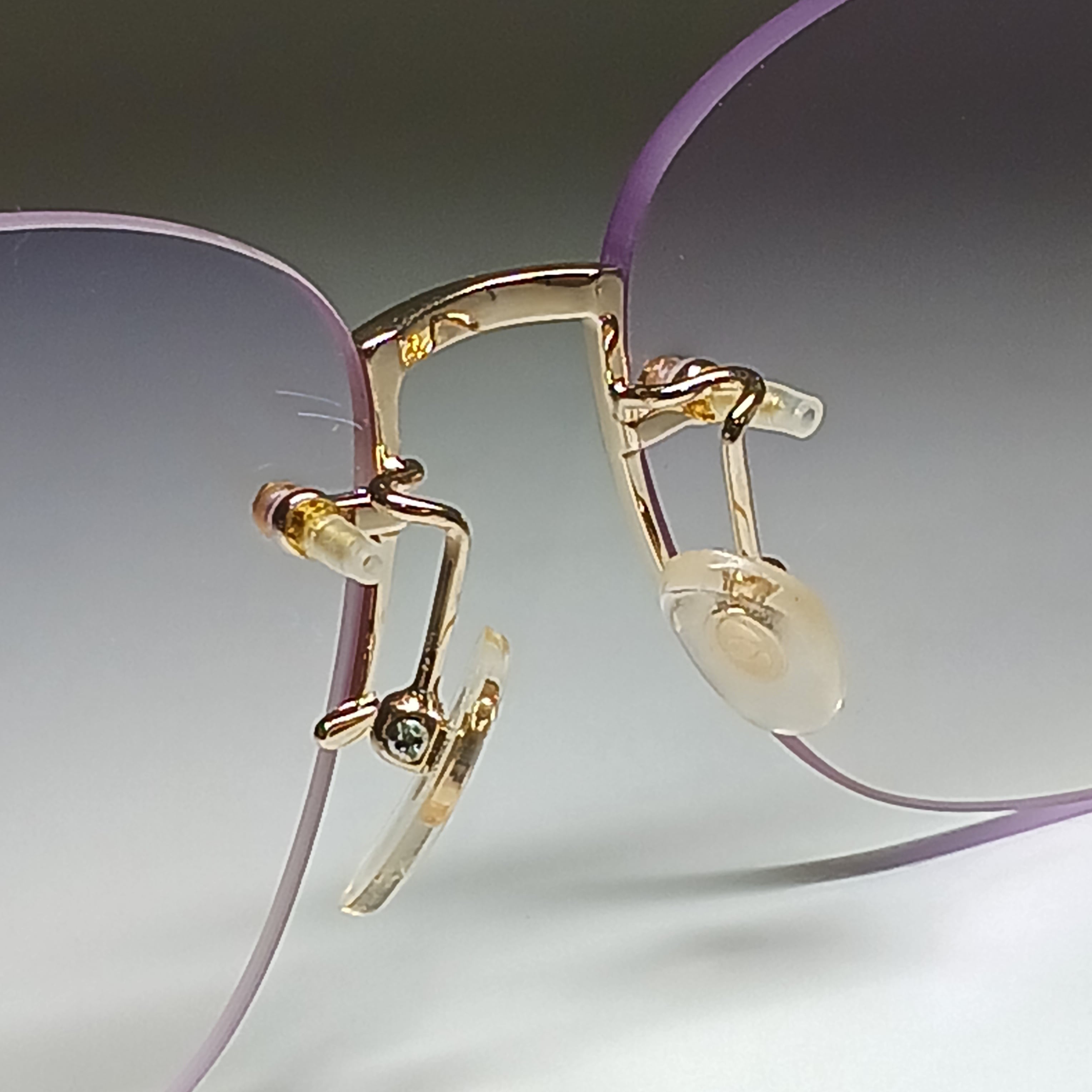 智金具に大き目の天然のアメジストが埋め込まれており、気品を感じさせます。またレンズも薄っすらとアメジストによく似たカラーで染色されています。