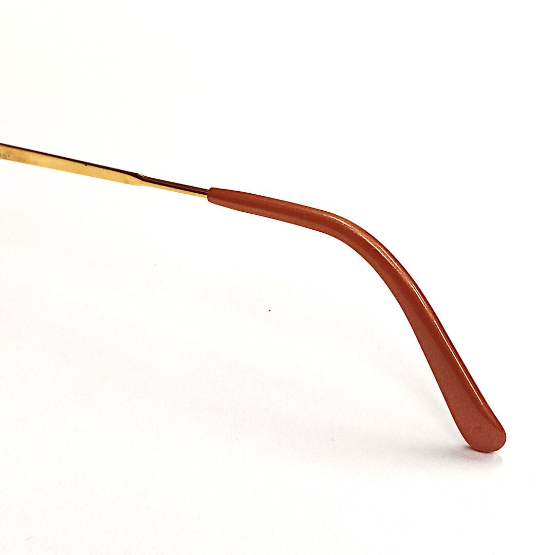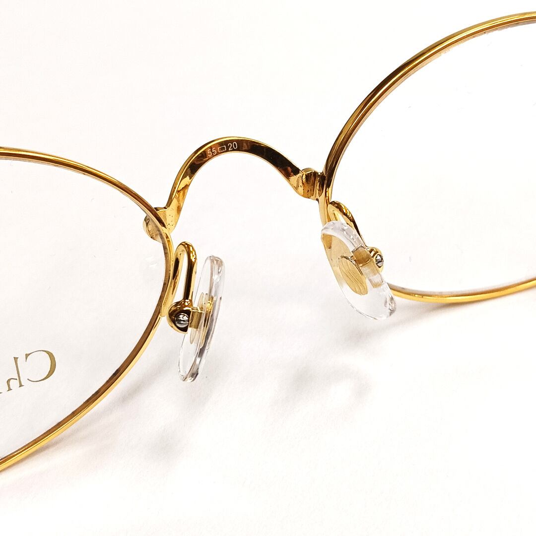 形状はシンプルなオーバルのデザインですが、テンプル(つる)の付け根とブリッジに特徴が有ります。写真の様に取り付け部分が装飾を兼ねていて可愛らしい「丸」で繋がっている構造です。更に両方のテンプルには「CD」のロゴが付いており、お洒落感は抜群です!